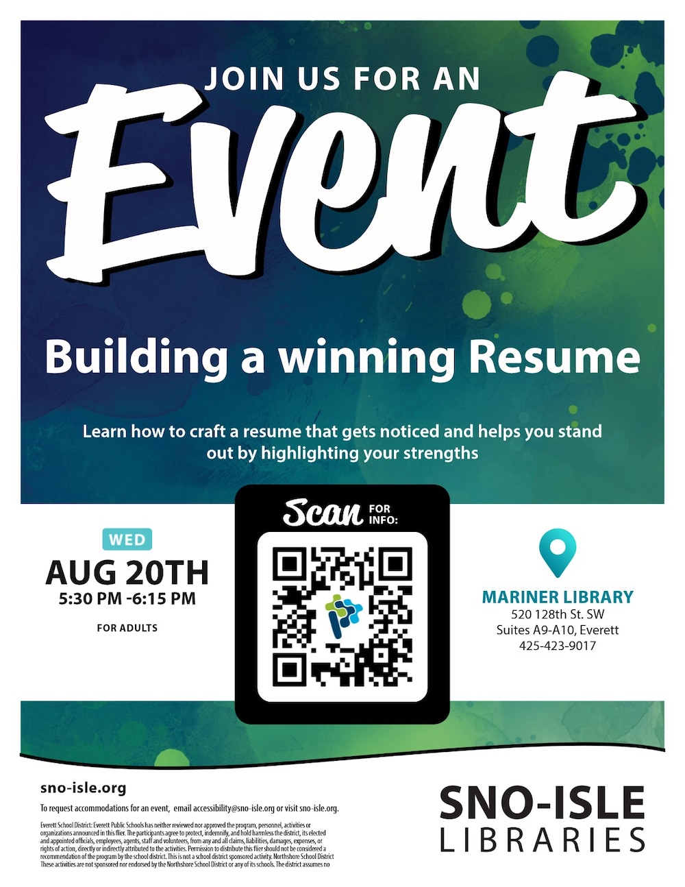 Mariner Library – 520 128th St SW Suites A9 y A10, Everett, WA 98204