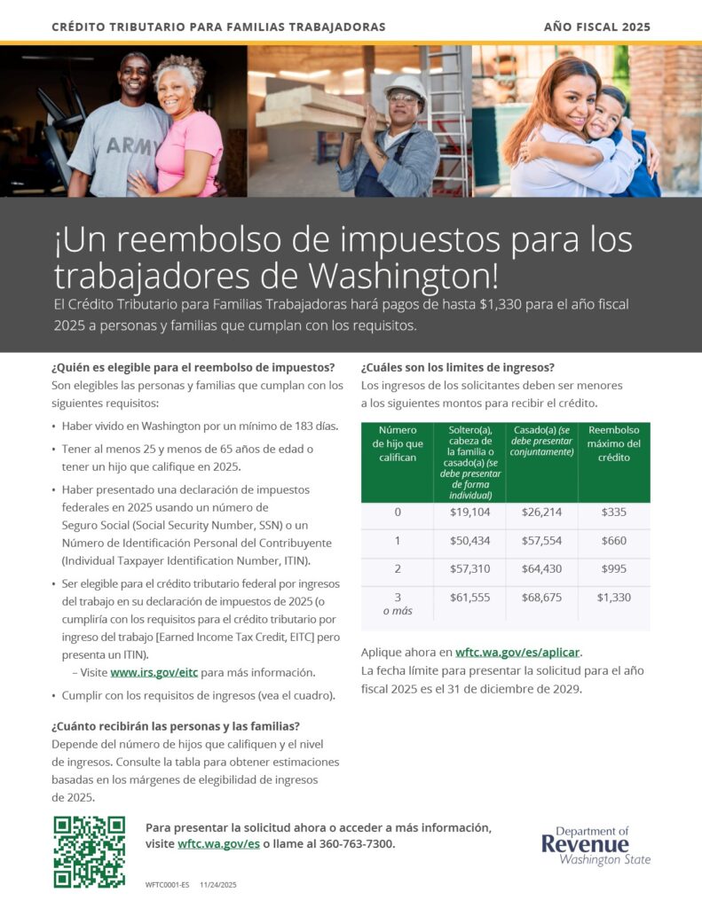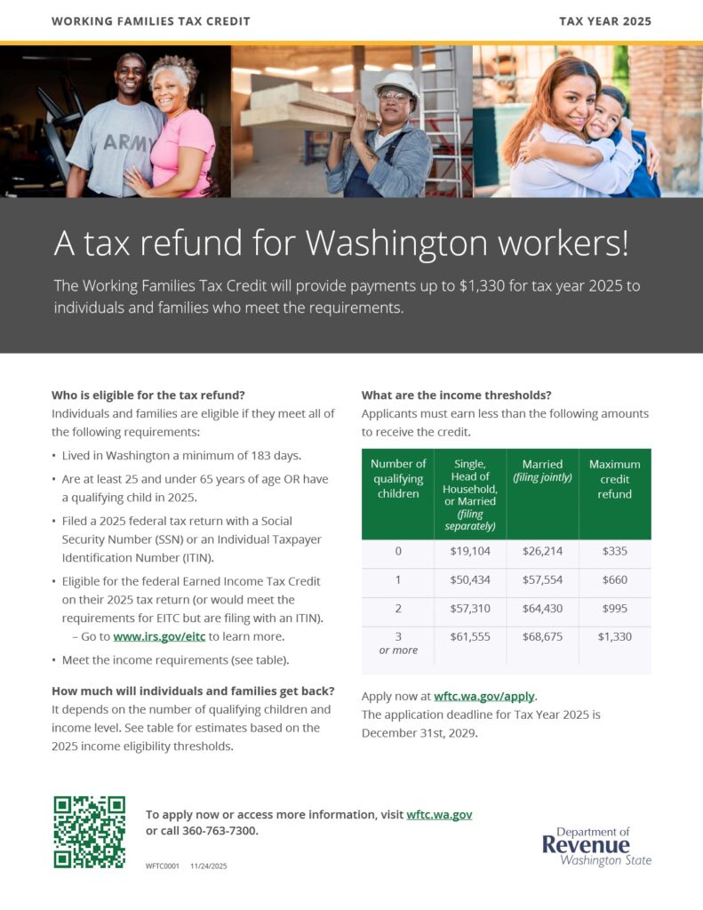 To read more about Washington’s Working Families Tax Credit, visit WFTC.wa.gov.